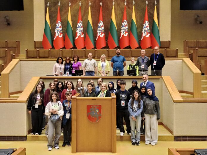 O programa incluiu simulações políticas criativas, nas quais os participantes projetaram cidades ideais, organizaram campanhas eleitorais e debateram desafios reais, como a gestão orçamental e a integração de refugiados. “Foi incrível perceber como a democracia exige compromisso. Criámos leis, negociámos prioridades e até enfrentámos ‘crises’ imaginárias – tudo em poucas horas!”, contou Gonçalo Sousa, aluno do 10.º ano. A experiência ganhou dimensão real com visitas às instituições locais. Na Câmara Municipal de Raseiniai, os jovens conversaram com o presidente Arvydas Nekrošius sobre políticas públicas. “Ele mostrou-nos que governar é escutar as pessoas, mesmo quando discordam”, destacou Matilde Costa, do 7.º ano. Já no Parlamento Lituano, em Vilnius, o deputado Matas Skamarakas guiou-os pela história do país, marcada pela resistência à ocupação soviética. “Percebemos que a democracia não é garantida – é uma conquista diária”, refletiu Camila Oliveira, do 10.º ano.