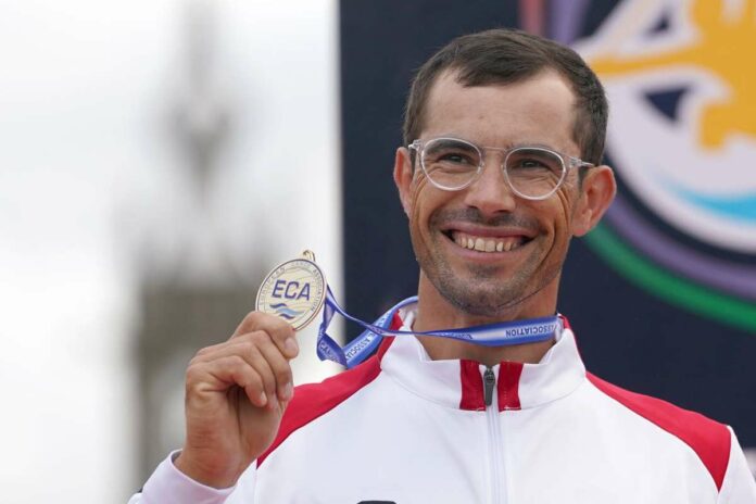 O desportista do Clube Náutico de Crestuma cumpriu os 15,4 quilómetros do traçado em 1:20.02 horas, batendo o espanhol Hector Vasquez, prata, por 44 segundos, enquanto o polaco Alex Wilga levou o bronze, a 1.10 minutos.