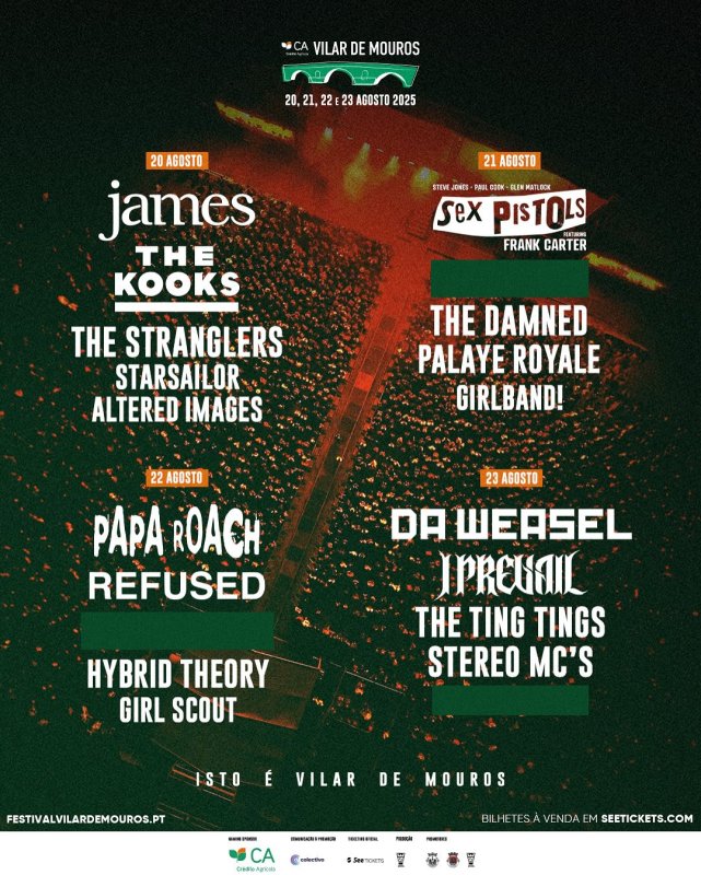Na quinta-feira sobem ao palco de Vilar de Mouros os Sex Pistols (com Frank Carter na voz), The Damned, Palaye Royale, The Godfathers e Girlband!.