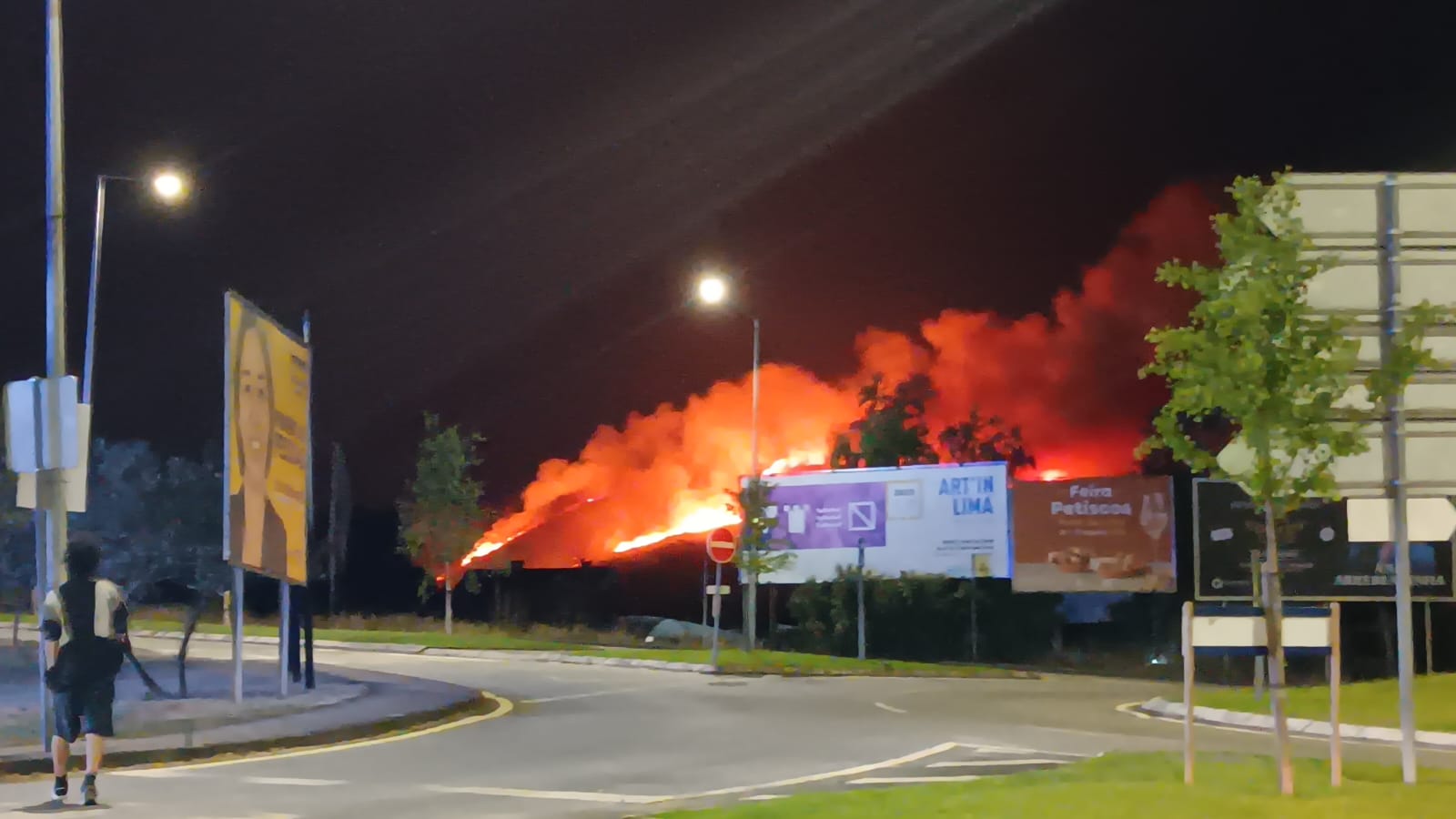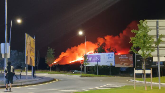 Uma vasta linha de fogo era visível desde a vila de Ponte de Lima, ao final da noite de hoje, mostrando a força do vento.