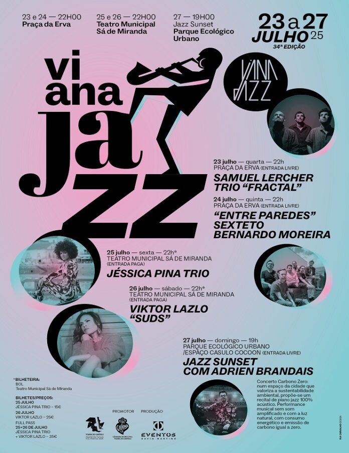 O festival de jazz de Viana do Castelo passa a chamar-se Viana Jazz e a 34.ª edição realiza-se entre 23 e 27 de julho com concertos de Jéssica Pina Trio e Viktor Lazlo, foi hoje divulgado.